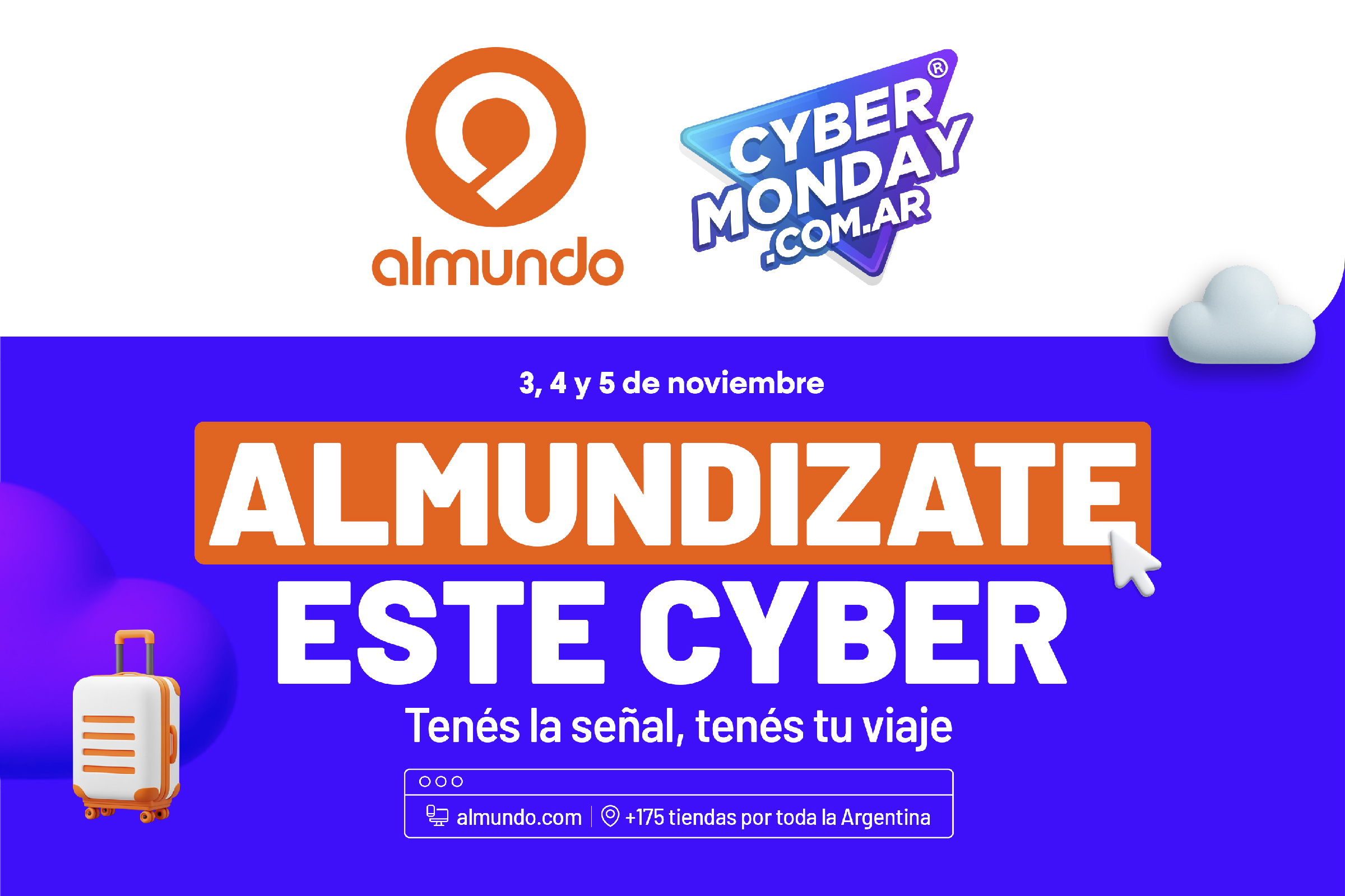 Desde las 00hs del lunes 3 y hasta el miércoles 5 de noviembre, Almundo participa de un nuevo Cyber Monday con las mejores ofertas y financiación para planificar tus vacaciones
