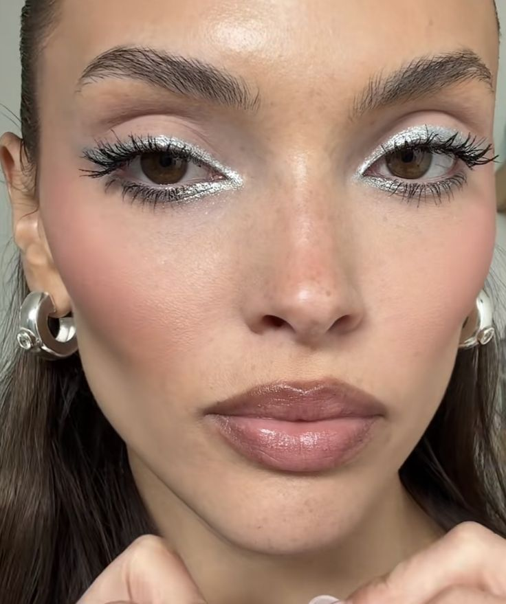 En cualquier festival de música, el maquillaje inspirado en el metal glow es una gran opción. El negro define la mirada, el efecto rasgado suma personalidad y el brillo metálico le da ese toque extra de personalidad.